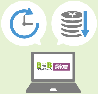 「BtoBプラットフォーム 契約書」は契約締結と契約書の保管・管理がWEBで完結する電子契約書サービスです。電子署名・タイムスタンプを付与した電子ファイルを用いて電子契約を締結するので、業務効率化はもちろん、大幅なコスト削減が実現します。